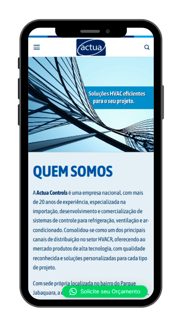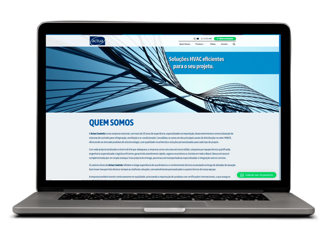 No projeto desenvolvido para a Actua Controls, nossa agência foi responsável pela criação do site institucional em WordPress, com foco em apresentar de forma clara e profissional os produtos e soluções da empresa no segmento de automação predial e sistemas de ar-condicionado. O objetivo foi estruturar uma plataforma moderna, responsiva e de fácil gerenciamento, alinhada à identidade corporativa da marca.