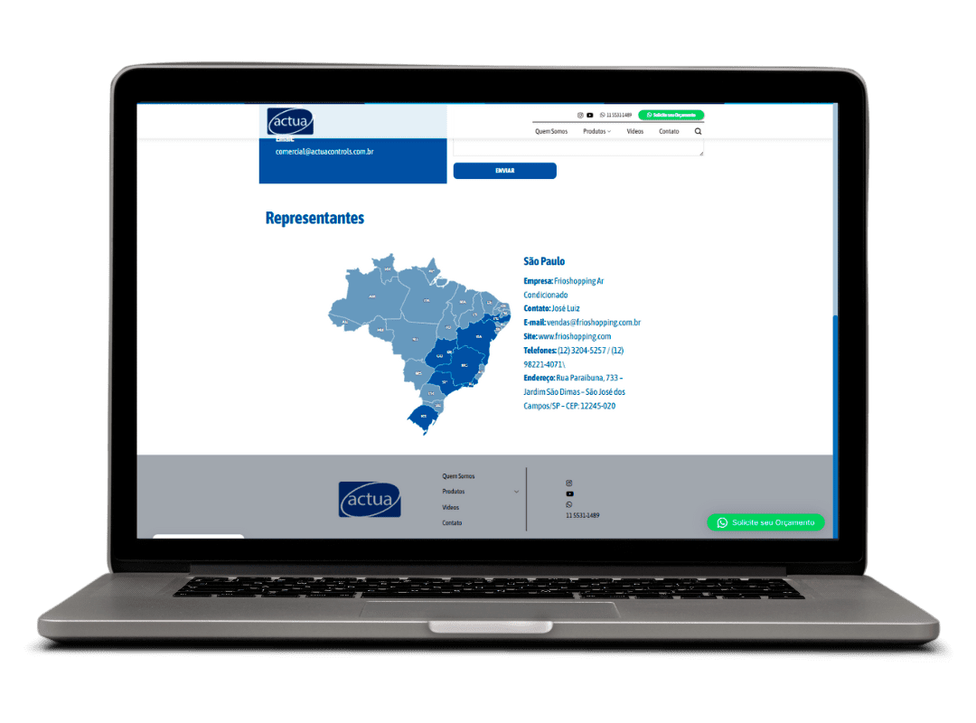 O resultado foi um site institucional completo, com design moderno e responsivo, que transmite credibilidade e valoriza a linha de produtos da Actua Controls. A nova plataforma tornou-se um canal eficiente para clientes e parceiros conhecerem as soluções da empresa, fortalecendo sua presença digital no setor de automação e HVAC.