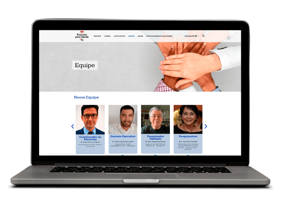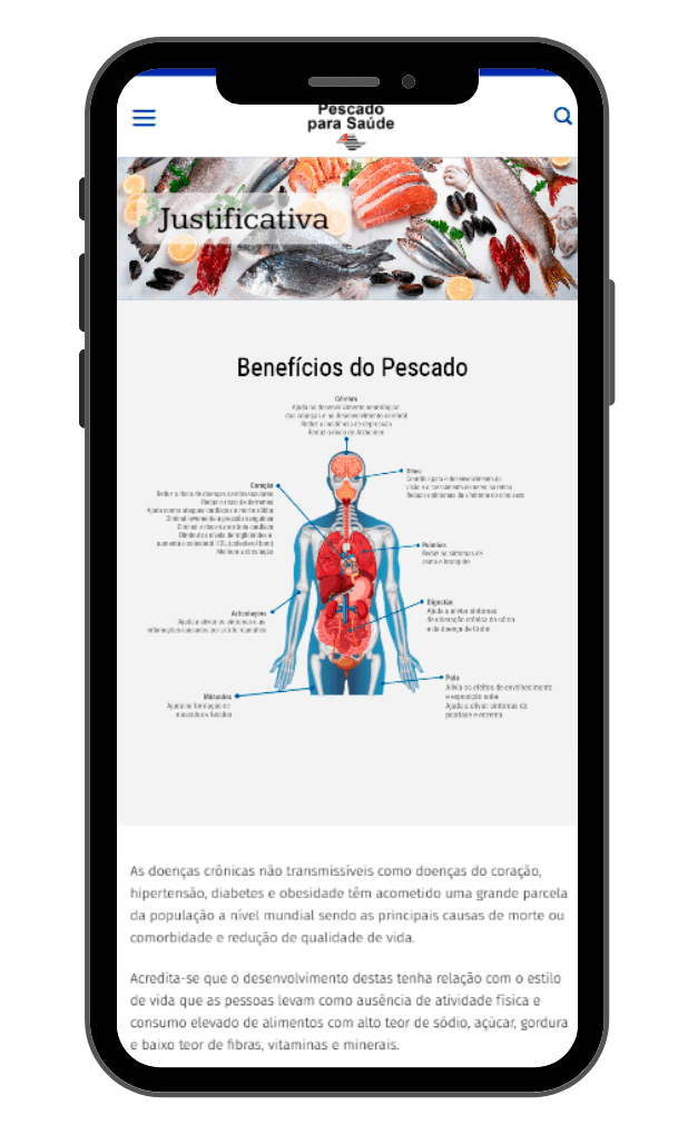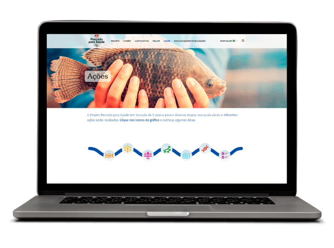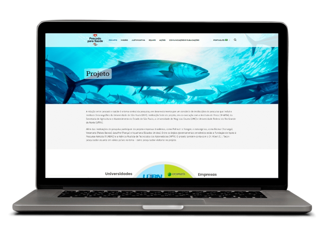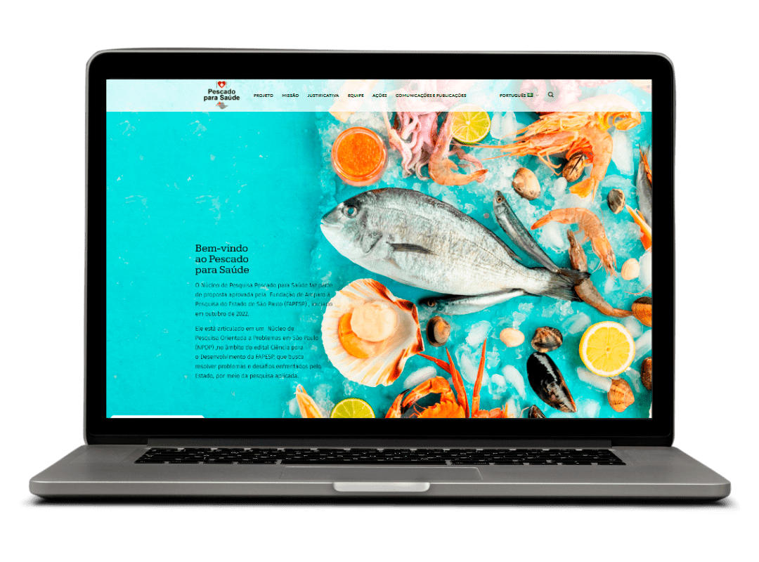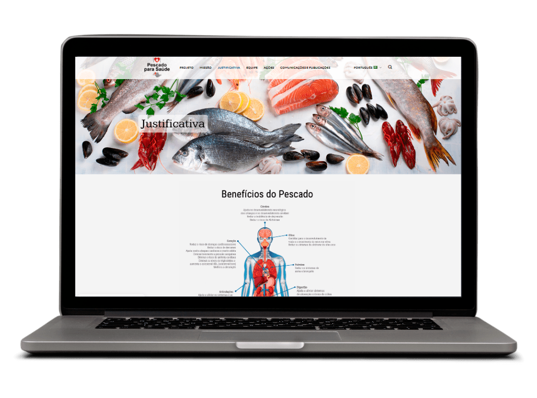 Desenvolvemos o site institucional do Pescado para Saúde em WordPress, com design responsivo, layout semântico para SEO eficiente, módulos para vídeo, gráficos animados feitas pela nossa equipe, newsletter e controle de cookies.