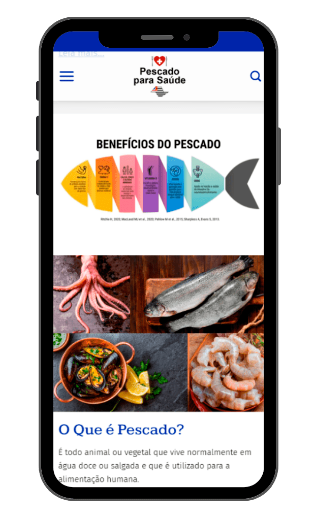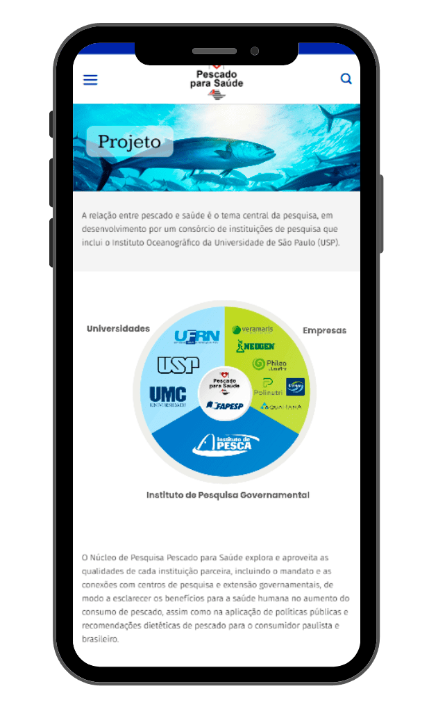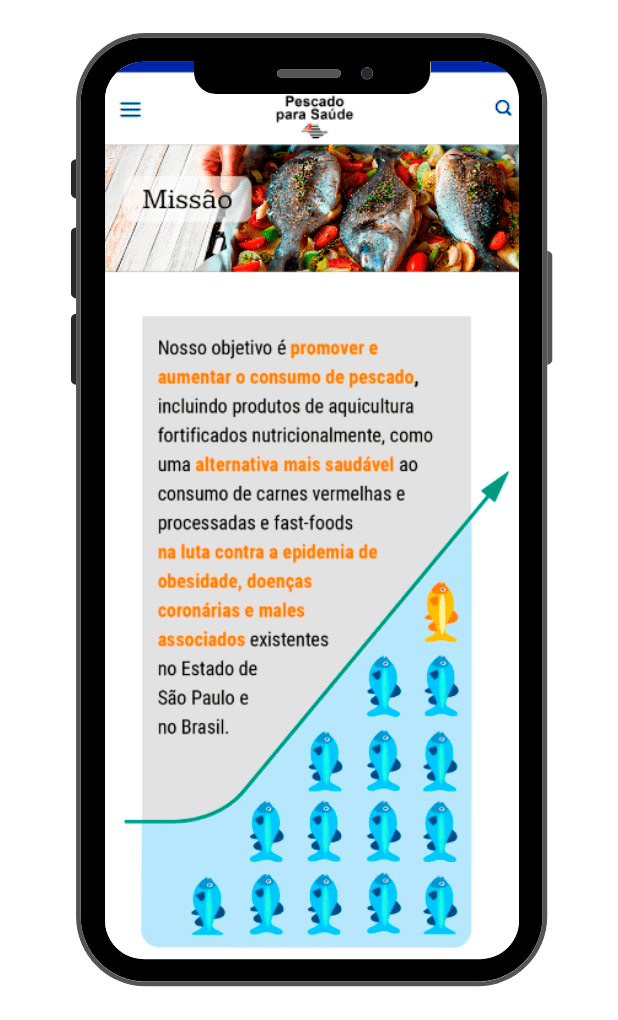 O website Pescado para Saúde tem como objetivo informar e engajar o público sobre os benefícios do consumo de pescado fortificado como alternativa saudável